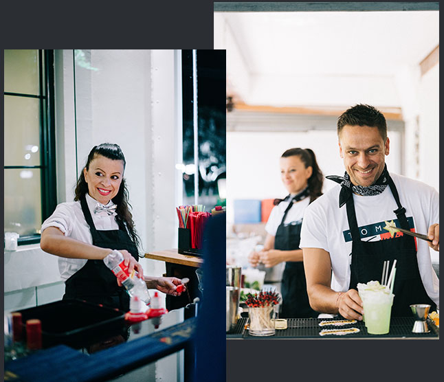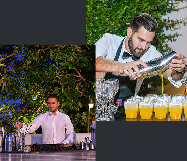 Παρέχουμε άριστης ποιότητας υπηρεσίες bar και cocktail catering, που στόχο έχουν να εξασφαλίσουν ένα αψεγάδιαστο αποτέλεσμα και να μετατρέψουν την κάθε εκδήλωση σε μια αξέχαστη εμπειρία για εσάς και τους καλεσμένους σας. Η παρουσία μας στα πιο απαιτητικά events στον χώρο της bartender σκηνής σε Ελλάδα & Εξωτερικό μας επιτρέπει να έχουμε μία “highclass” εξυπηρέτηση όχι μόνο στα Ελληνικά αλλά και σε ξένες γλώσσες όπως Αγγλικά & Γαλλικά.